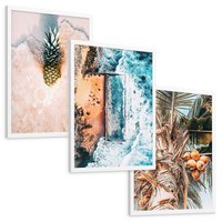 Zestaw obrazy w ramie, plakaty - ananas, plaża, kokosy