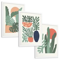 Zestaw obrazy w ramie, plakaty - liście, rośliny, abstrakcja