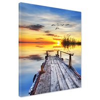 Obraz na płótnie - jezioro, molo, zachód słońca