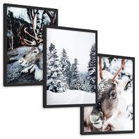 Zestaw obrazy w ramie, plakaty - renifer, zima, śnieg