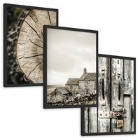 Zestaw obrazy w ramie, plakaty - drewno, tekstura, budynek