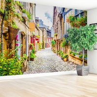 Fototapeta - uliczka, kwiaty, budynki