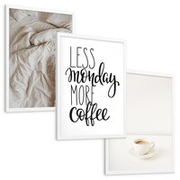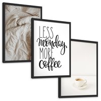 Zestaw obrazy w ramie, plakaty - kawa, łóżko, minimalizm