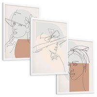 Zestaw obrazy w ramie, plakaty - kobieta, kapelusz, portret
