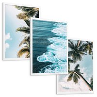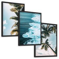 Zestaw obrazy w ramie, plakaty - tropikalny, morze, palmy