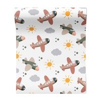 Tapeta - dziecięca, samoloty, słońca, chmury