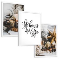 Zestaw obrazy w ramie, plakaty - kawa, świece, dekoracje
