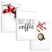 Zestaw obrazy w ramie, plakaty - kwiaty,kawa,tekst