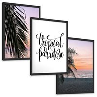 Zestaw obrazy w ramie, plakaty - palma, tropiki, morze