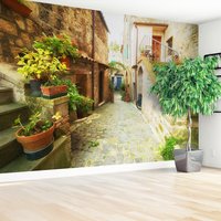 Fototapeta - uliczka, kwiaty, kamień