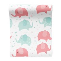 Tapeta - dziecięca, słoń, drzewa, ptak