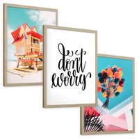 Zestaw obrazy w ramie, plakaty - plaża, budynek, balony
