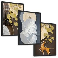 Zestaw obrazy w ramie, plakaty - las, drzewa, jeleń