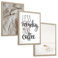 Zestaw obrazy w ramie, plakaty - kawa, łóżko, minimalizm