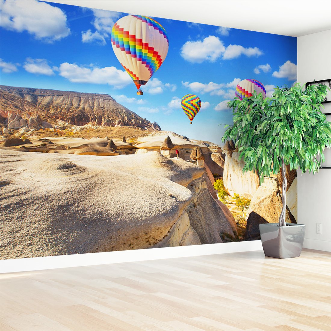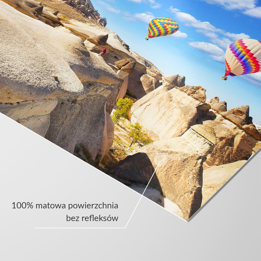 Nadaj swojemu wnętrzu unikalny charakter i głębię dzięki naszej fototapecie z motywem balony, krajobraz, kapadocja. Ta imponująca dekoracja ścienna to połączenie nowoczesnego designu i zapierającego dech w piersiach motywu, które całkowicie odmieni Twoje pomieszczenie