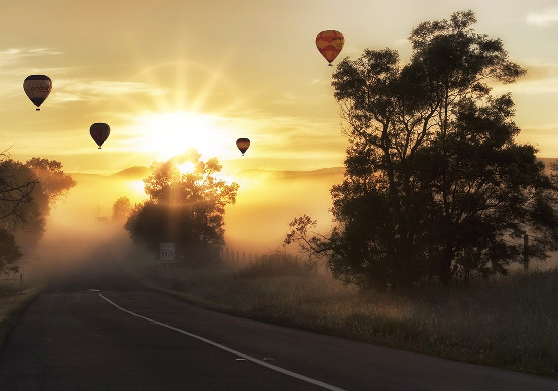 Nadaj swojemu wnętrzu unikalny charakter i głębię dzięki naszej fototapecie z motywem balony, wschód słońca, mgła. Ta imponująca dekoracja ścienna to połączenie nowoczesnego designu i zapierającego dech w piersiach motywu, które całkowicie odmieni Twoje pomieszczenie