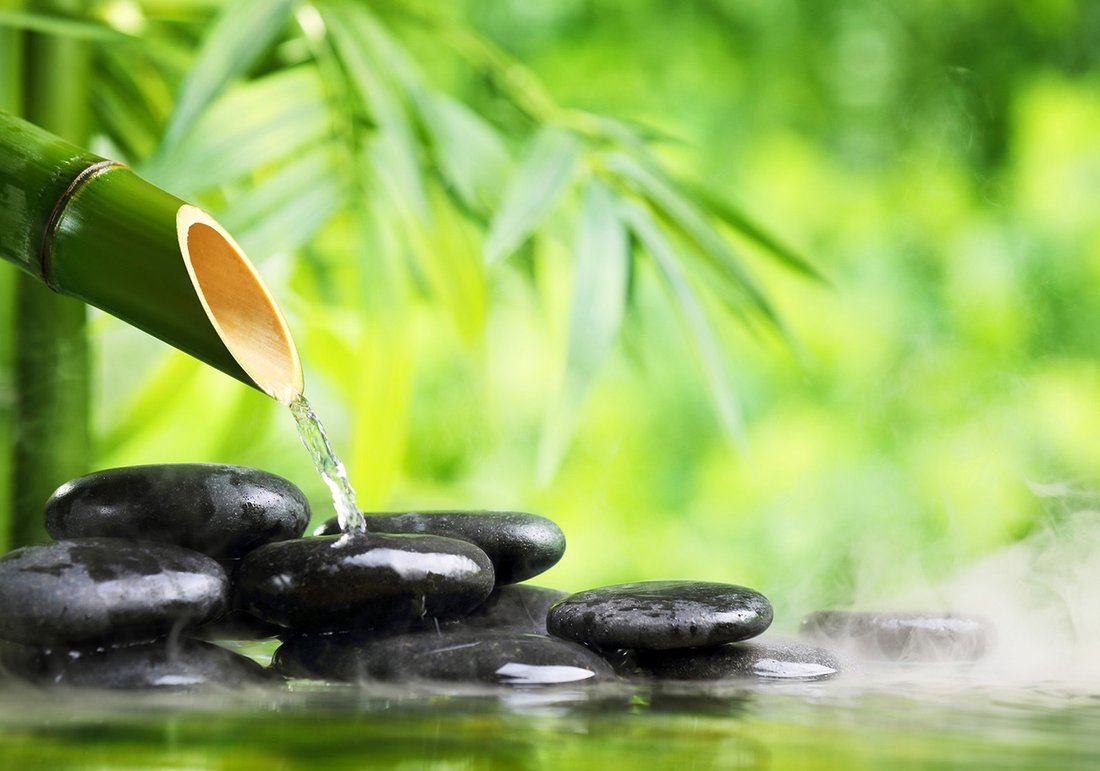 - Fototapeta - bambus, kamienie, woda