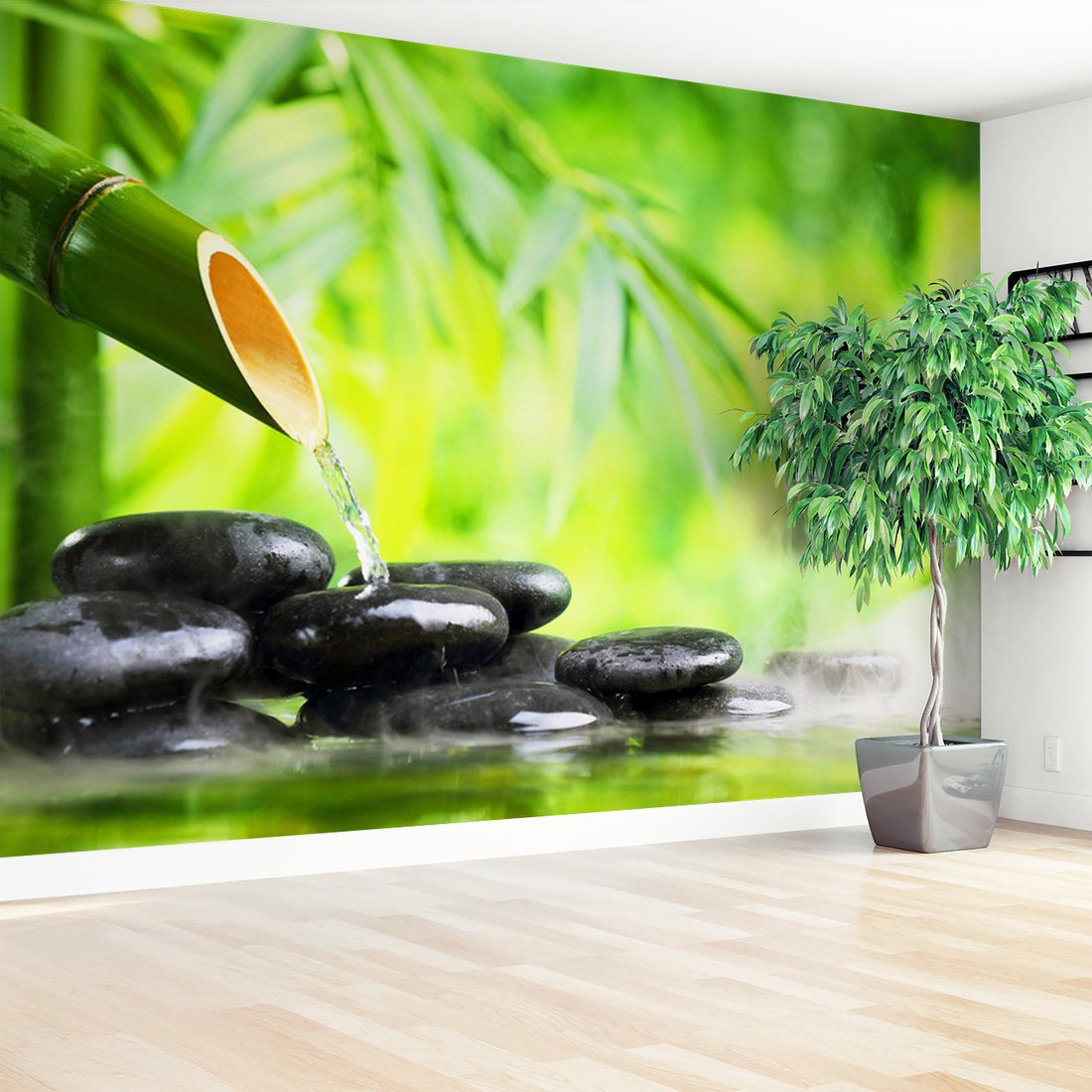 Nadaj swojemu wnętrzu unikalny charakter i głębię dzięki naszej fototapecie z motywem bambus, kamienie, woda. Ta imponująca dekoracja ścienna to połączenie nowoczesnego designu i zapierającego dech w piersiach motywu, które całkowicie odmieni Twoje pomieszczenie