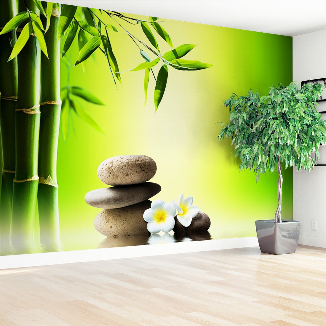 Nadaj swojemu wnętrzu unikalny charakter i głębię dzięki naszej fototapecie z motywem bambus, kwiaty, kamienie. Ta imponująca dekoracja ścienna to połączenie nowoczesnego designu i zapierającego dech w piersiach motywu, które całkowicie odmieni Twoje pomieszczenie