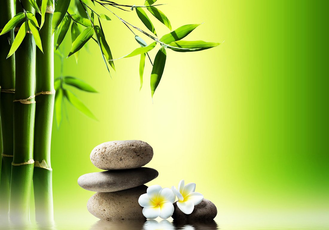 - Fototapeta - bambus, kwiaty, kamienie