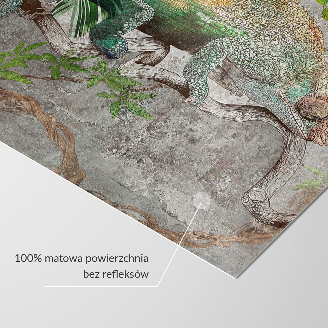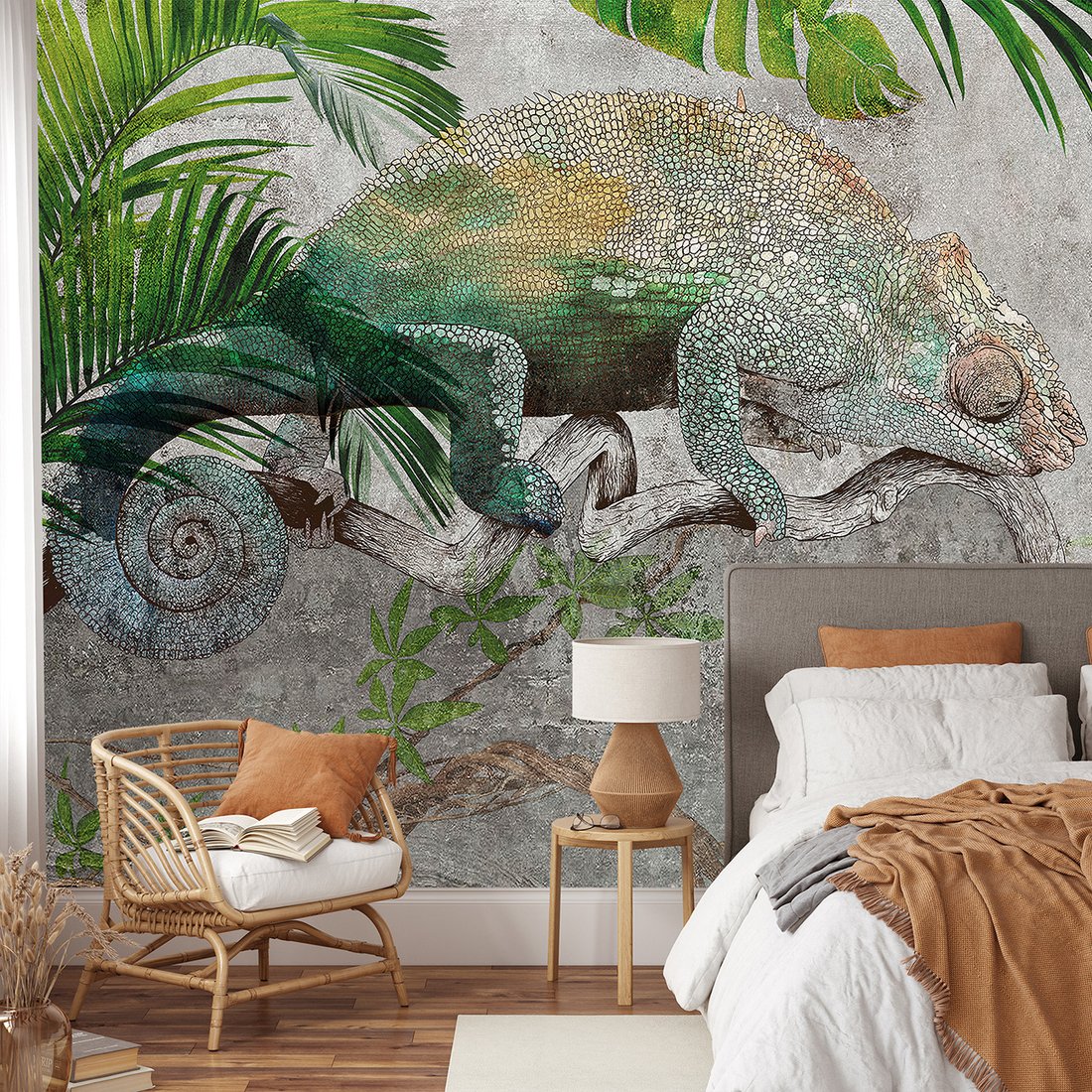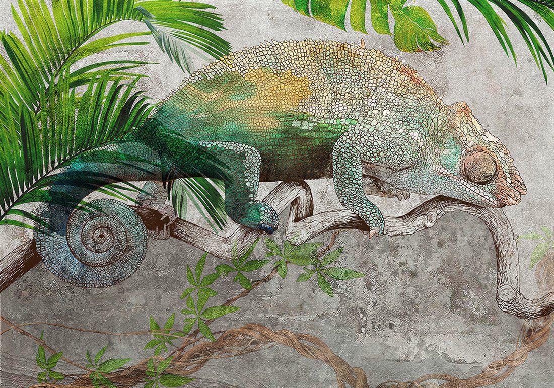 Nadaj swojemu wnętrzu unikalny charakter i głębię dzięki naszej fototapecie z motywem beton, kameleon, tropikalne. Ta imponująca dekoracja ścienna to połączenie nowoczesnego designu i zapierającego dech w piersiach motywu, które całkowicie odmieni Twoje pomieszczenie