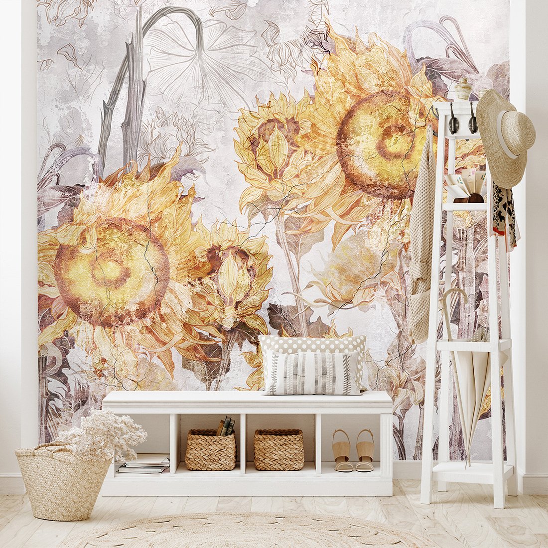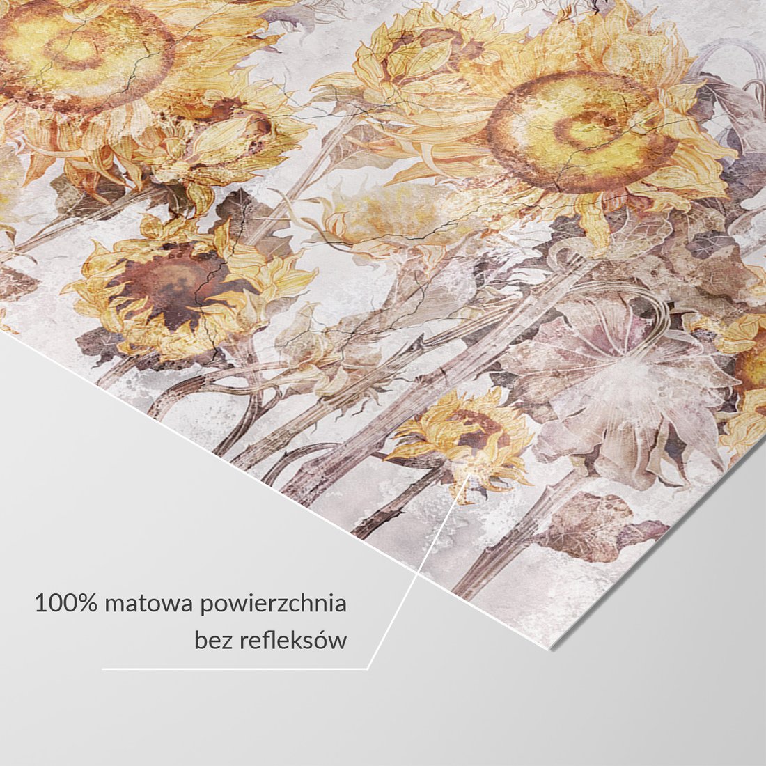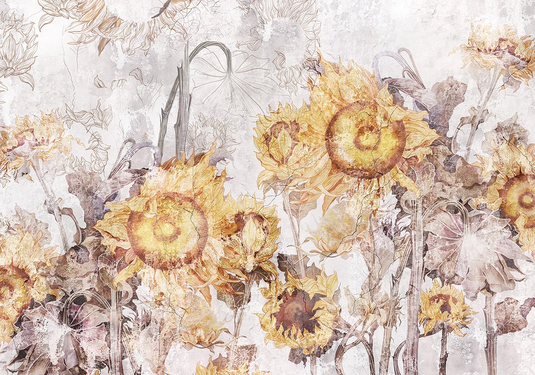 Nadaj swojemu wnętrzu unikalny charakter i głębię dzięki naszej fototapecie z motywem beton, kwiaty, słoneczniki. Ta imponująca dekoracja ścienna to połączenie nowoczesnego designu i zapierającego dech w piersiach motywu, które całkowicie odmieni Twoje pomieszczenie