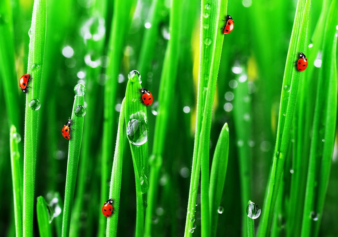 - Fototapeta - biedronki, trawa, krople