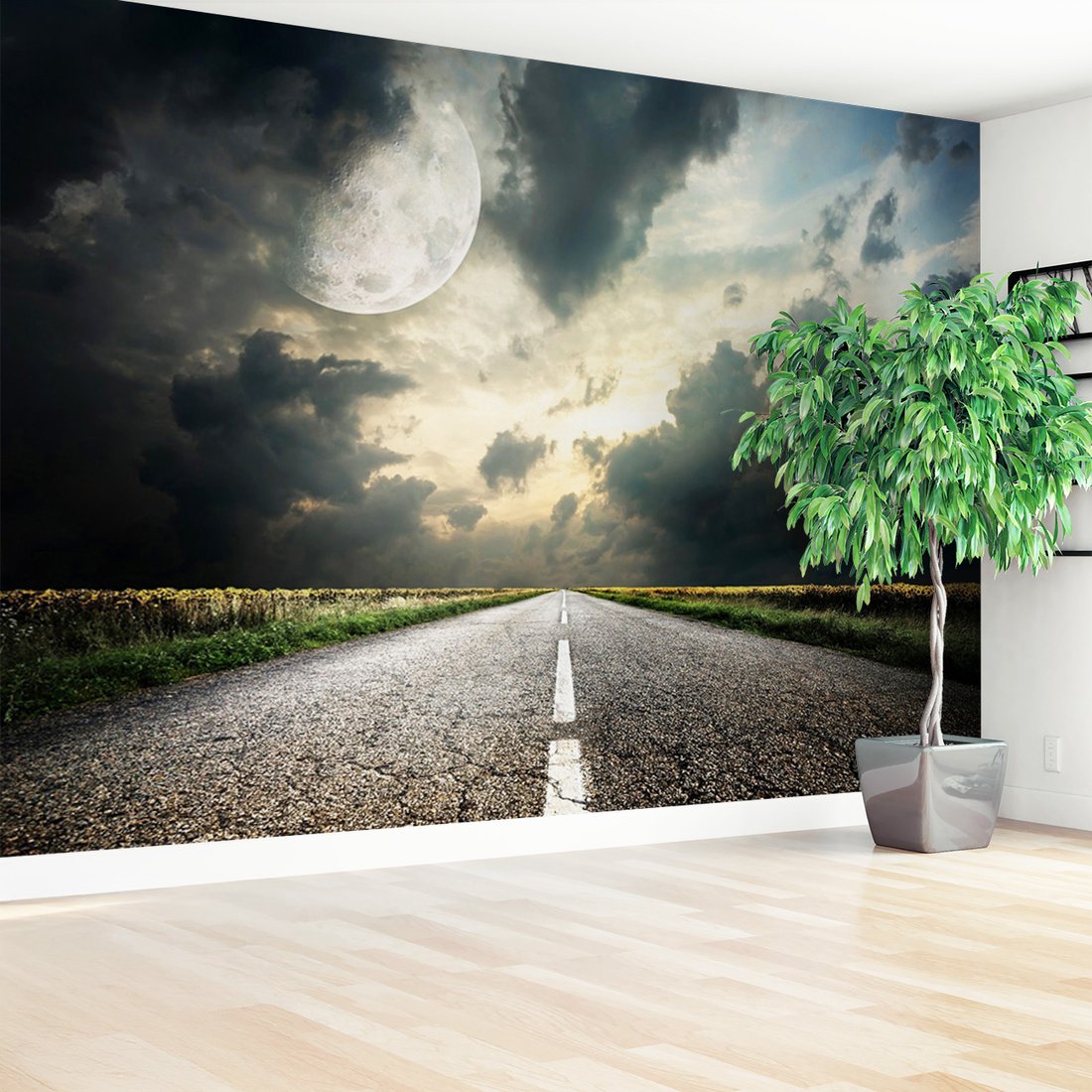 Nadaj swojemu wnętrzu unikalny charakter i głębię dzięki naszej fototapecie z motywem droga, księżyc, chmury. Ta imponująca dekoracja ścienna to połączenie nowoczesnego designu i zapierającego dech w piersiach motywu, które całkowicie odmieni Twoje pomieszczenie
