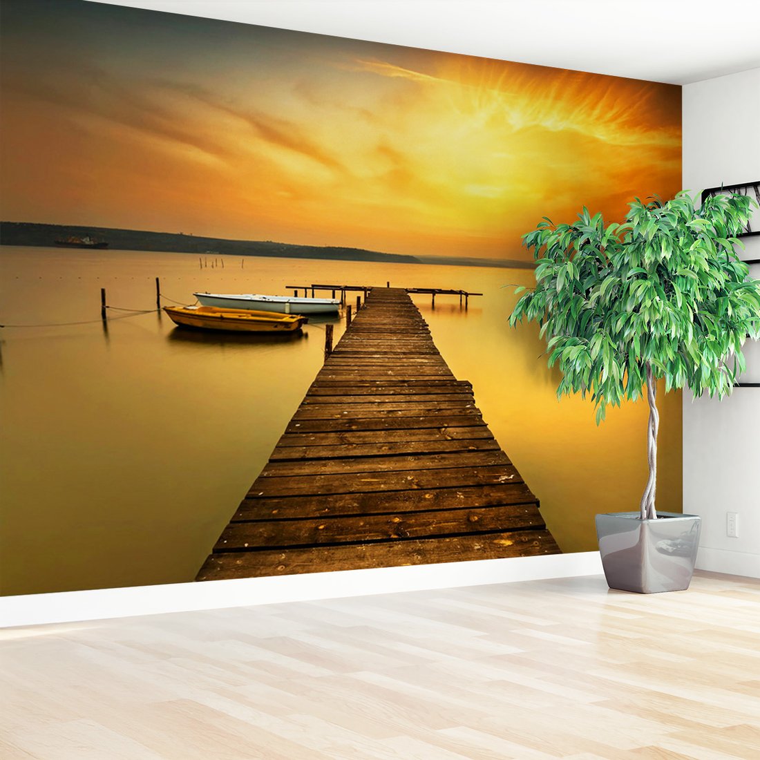 Nadaj swojemu wnętrzu unikalny charakter i głębię dzięki naszej fototapecie z motywem jezioro, pomost, łodzie. Ta imponująca dekoracja ścienna to połączenie nowoczesnego designu i zapierającego dech w piersiach motywu, które całkowicie odmieni Twoje pomieszczenie
