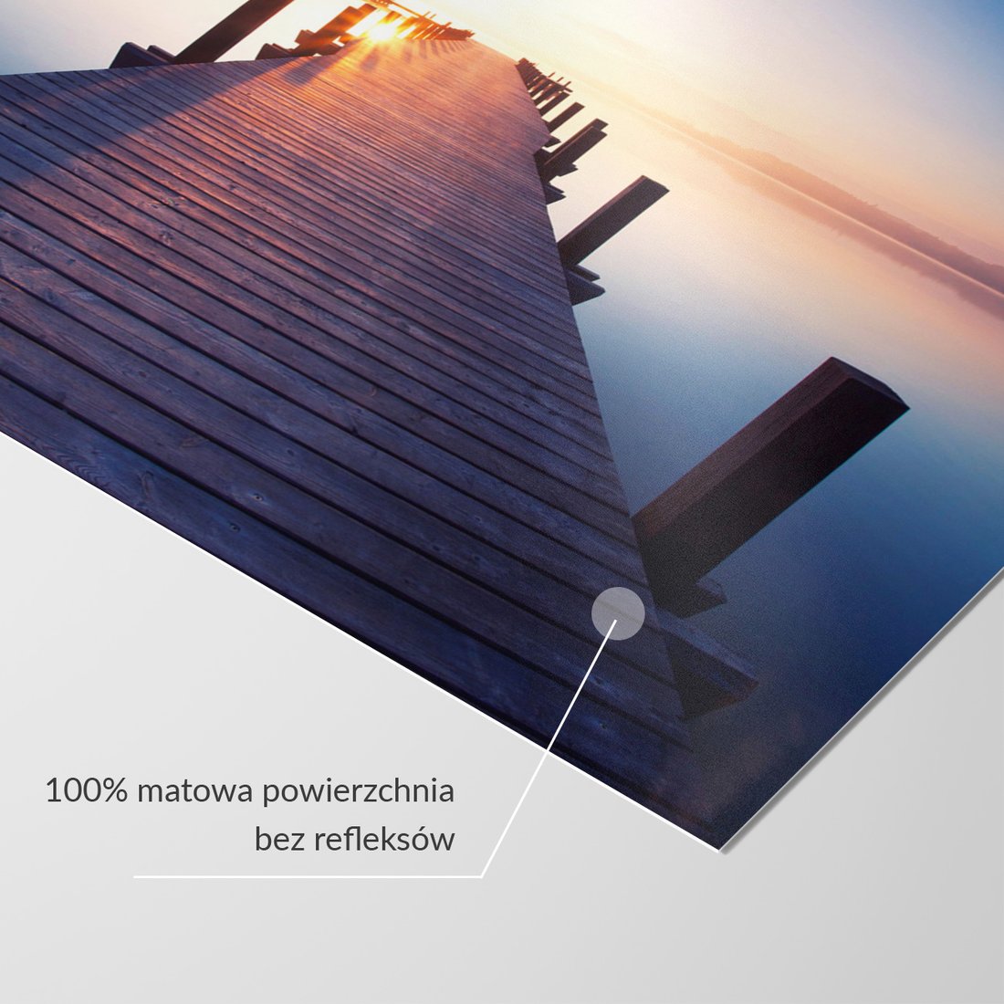 Nadaj swojemu wnętrzu unikalny charakter i głębię dzięki naszej fototapecie z motywem jezioro, pomost, wschód słońca. Ta imponująca dekoracja ścienna to połączenie nowoczesnego designu i zapierającego dech w piersiach motywu, które całkowicie odmieni Twoje pomieszczenie