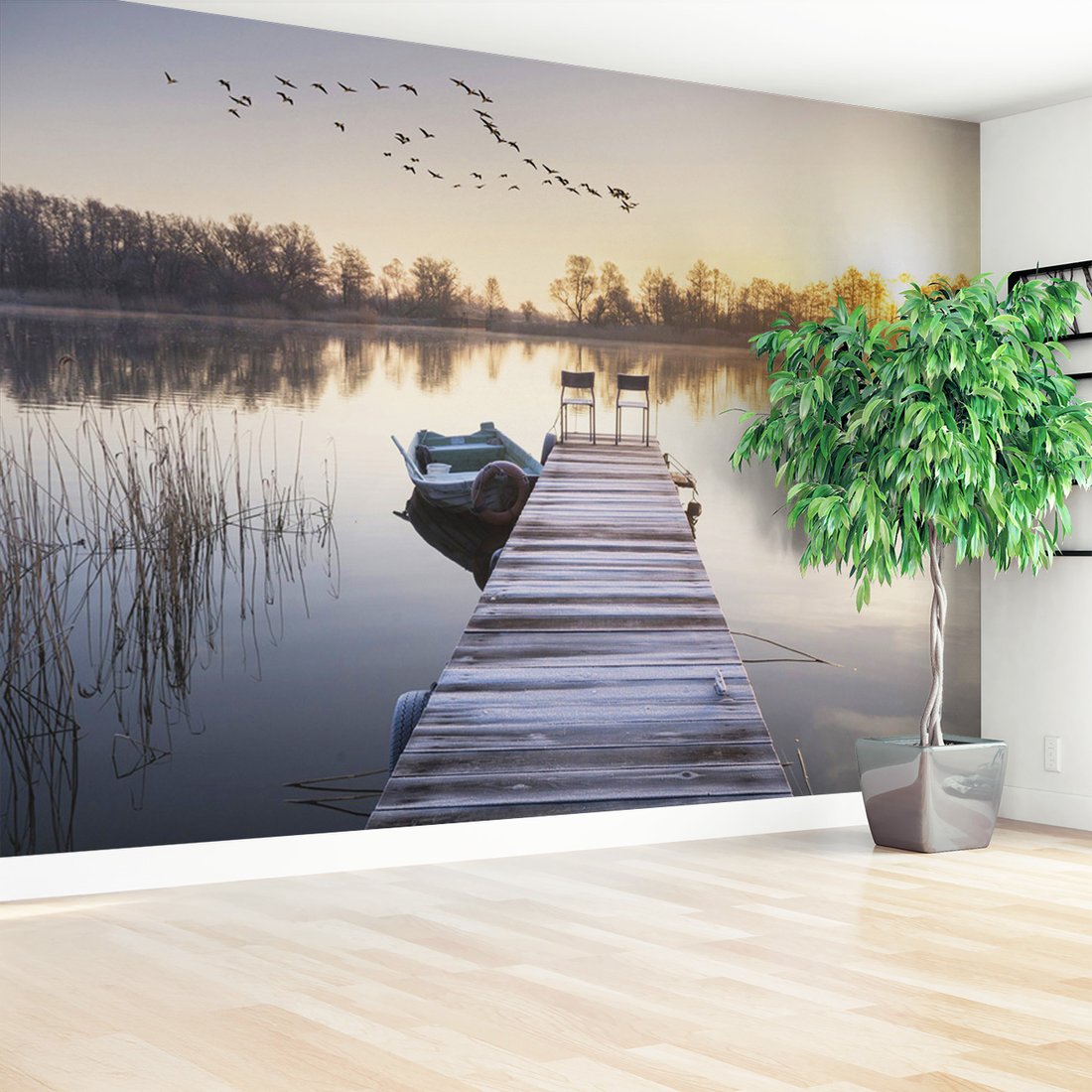 Nadaj swojemu wnętrzu unikalny charakter i głębię dzięki naszej fototapecie z motywem jezioro, pomost, wschód słońca. Ta imponująca dekoracja ścienna to połączenie nowoczesnego designu i zapierającego dech w piersiach motywu, które całkowicie odmieni Twoje pomieszczenie
