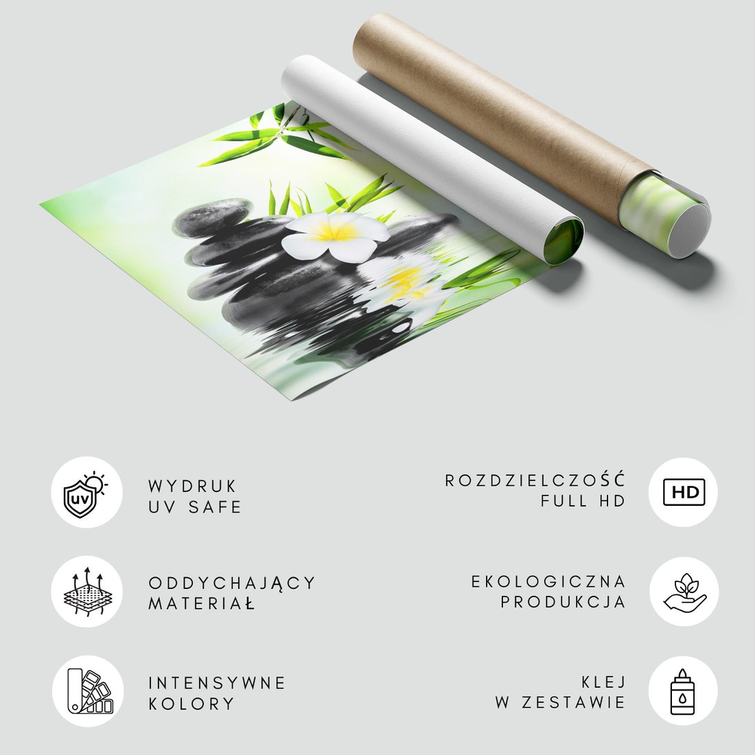 Nadaj swojemu wnętrzu unikalny charakter i głębię dzięki naszej fototapecie z motywem kamienie, bambus, kwiat. Ta imponująca dekoracja ścienna to połączenie nowoczesnego designu i zapierającego dech w piersiach motywu, które całkowicie odmieni Twoje pomieszczenie
