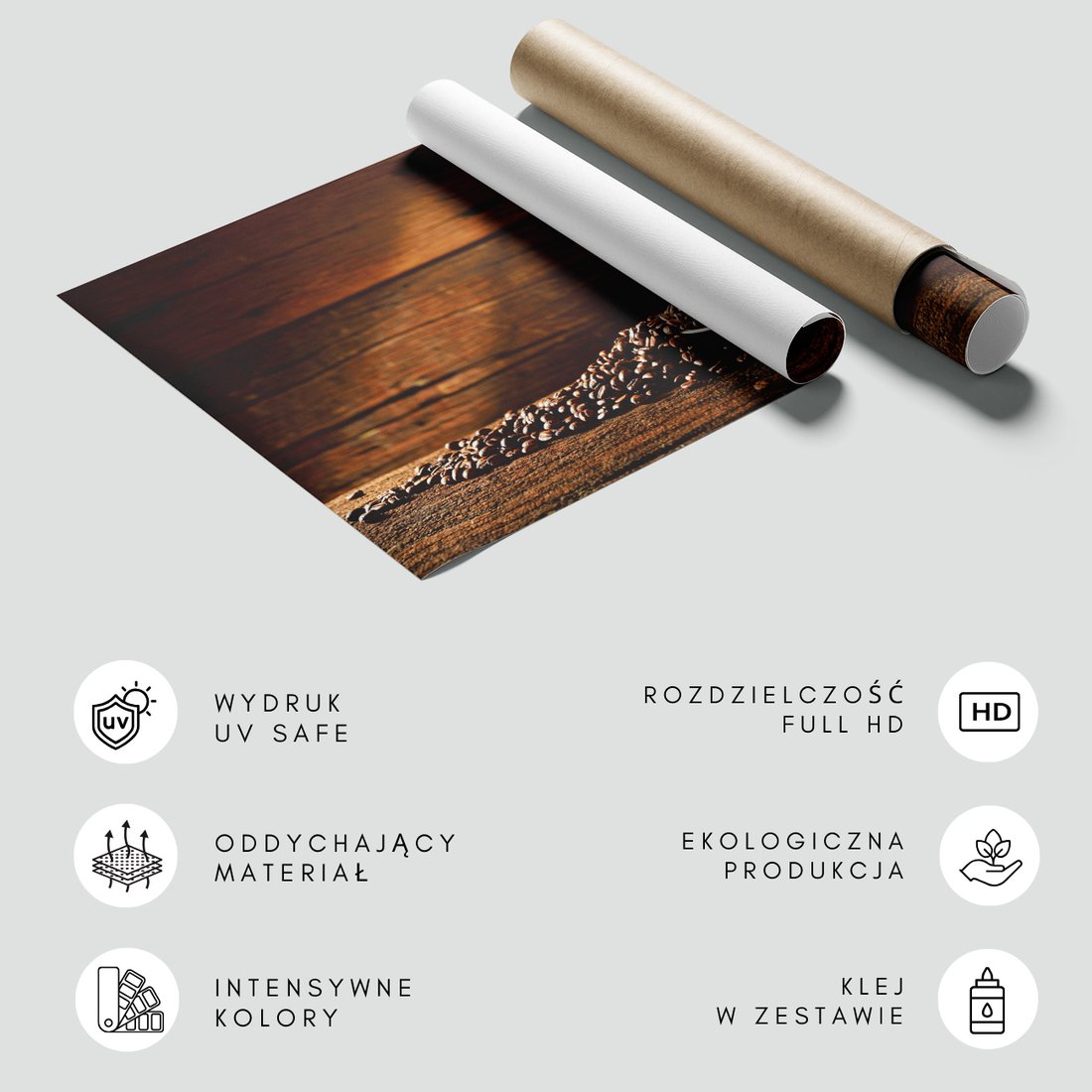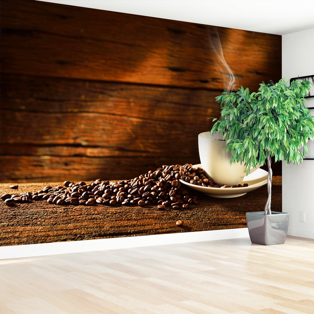 Nadaj swojemu wnętrzu unikalny charakter i głębię dzięki naszej fototapecie z motywem kawa, ziarna, filiżanka. Ta imponująca dekoracja ścienna to połączenie nowoczesnego designu i zapierającego dech w piersiach motywu, które całkowicie odmieni Twoje pomieszczenie