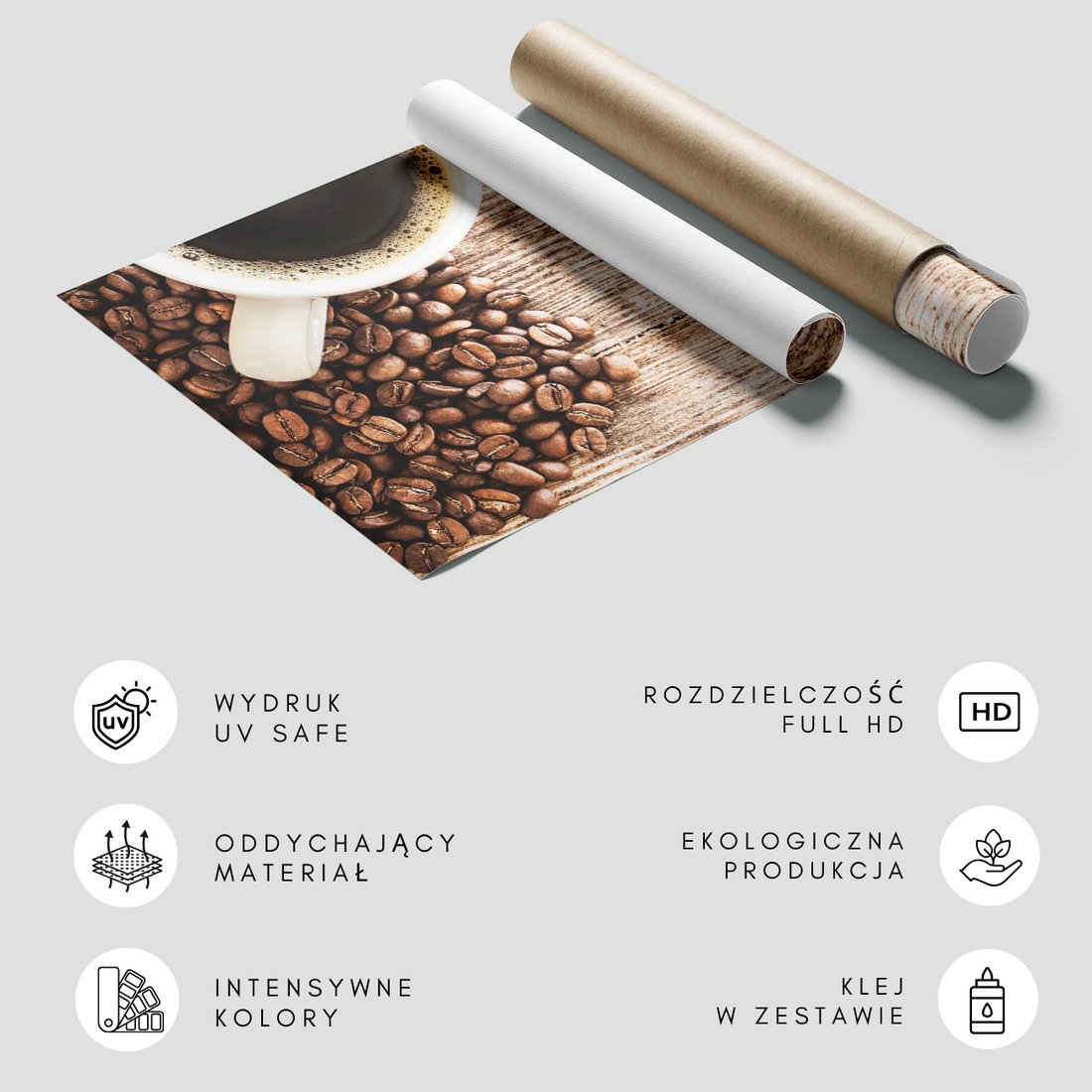 Nadaj swojemu wnętrzu unikalny charakter i głębię dzięki naszej fototapecie z motywem kawa, ziarna, napój. Ta imponująca dekoracja ścienna to połączenie nowoczesnego designu i zapierającego dech w piersiach motywu, które całkowicie odmieni Twoje pomieszczenie