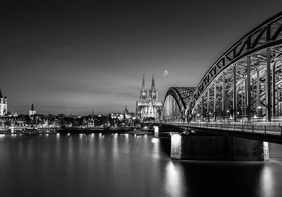Nadaj swojemu wnętrzu unikalny charakter i głębię dzięki naszej fototapecie z motywem Kolonia, most, noc. Ta imponująca dekoracja ścienna to połączenie nowoczesnego designu i zapierającego dech w piersiach motywu, które całkowicie odmieni Twoje pomieszczenie
