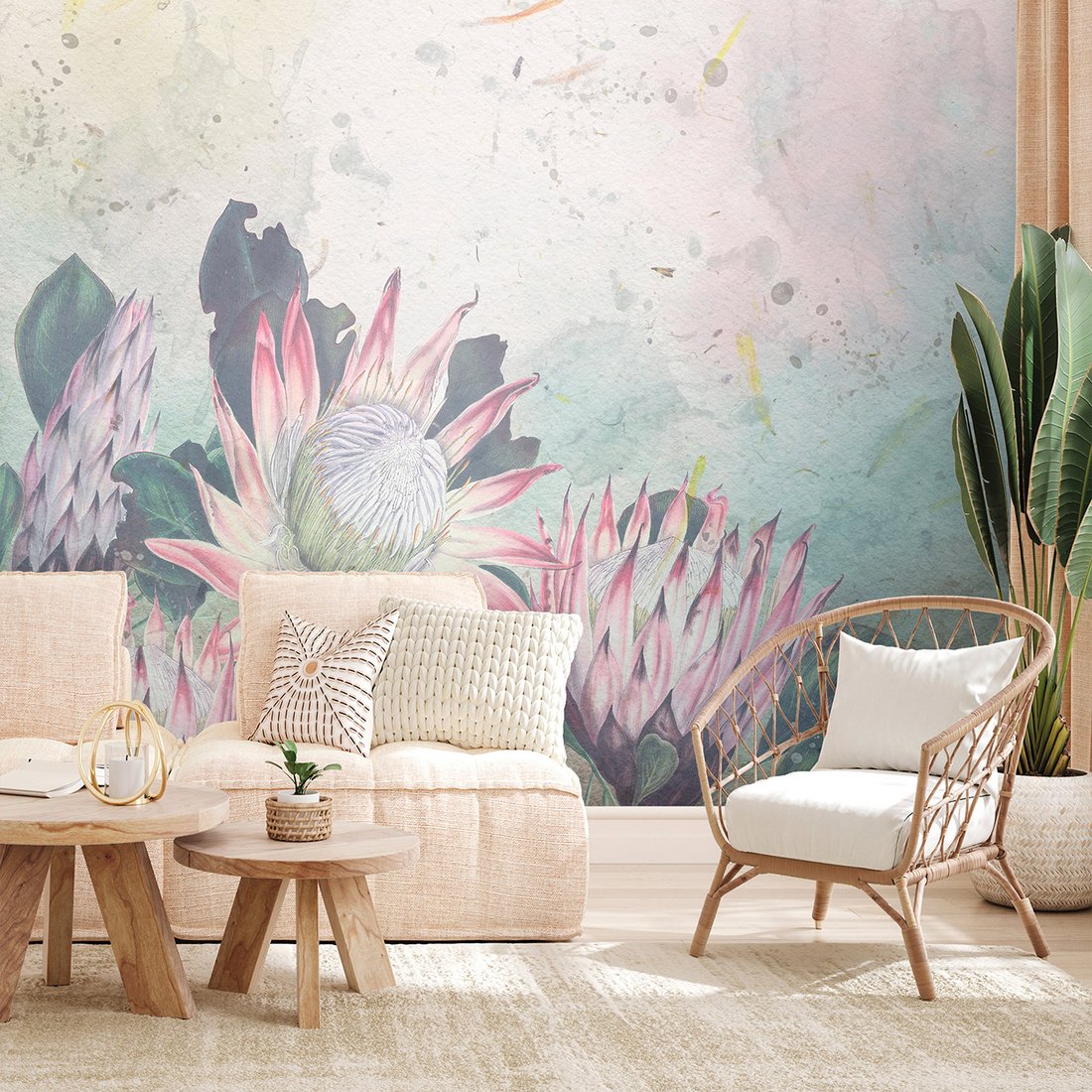 Nadaj swojemu wnętrzu unikalny charakter i głębię dzięki naszej fototapecie z motywem kwiaty, kaktus, abstrakcja. Ta imponująca dekoracja ścienna to połączenie nowoczesnego designu i zapierającego dech w piersiach motywu, które całkowicie odmieni Twoje pomieszczenie