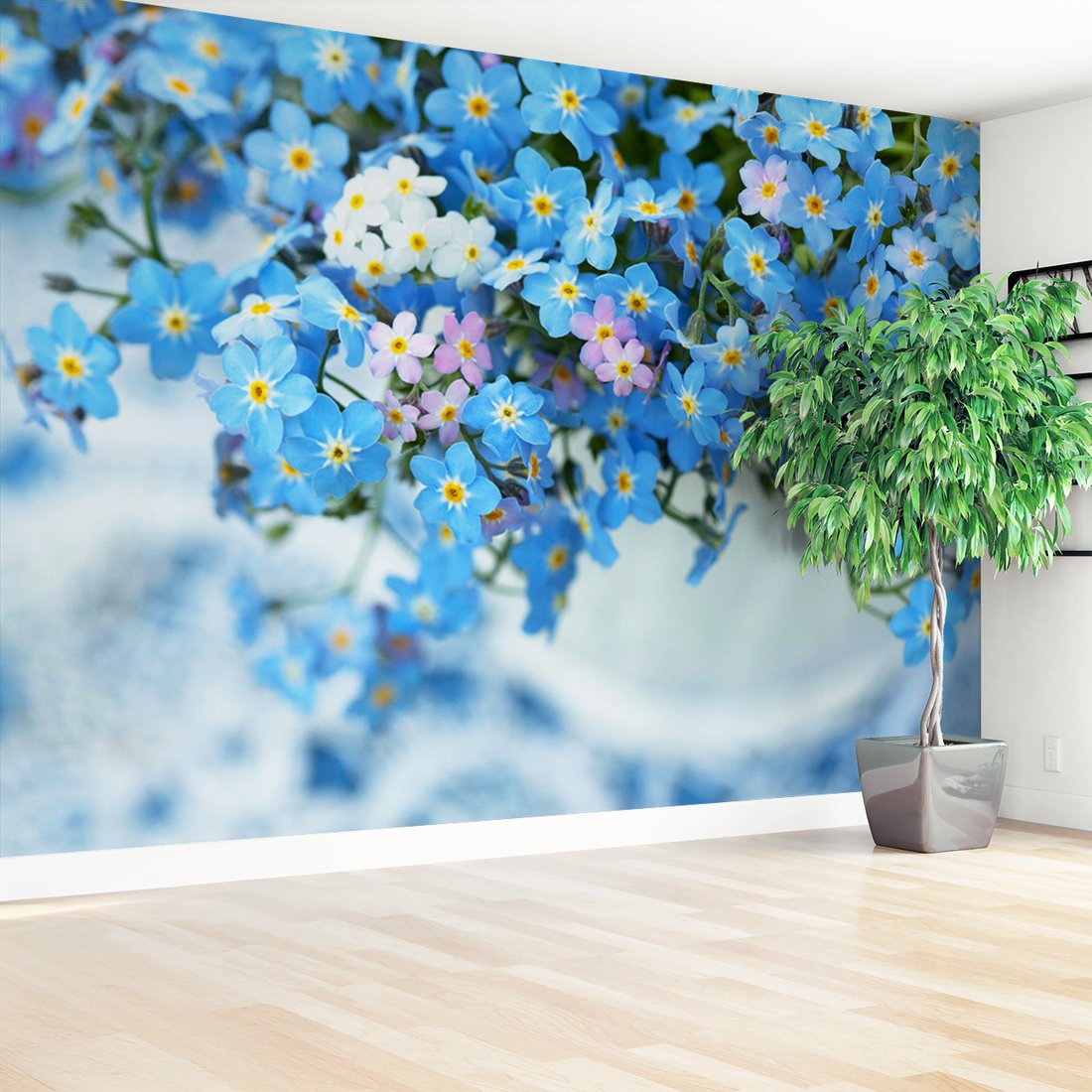 Nadaj swojemu wnętrzu unikalny charakter i głębię dzięki naszej fototapecie z motywem kwiaty, niezapominajki, wiosna. Ta imponująca dekoracja ścienna to połączenie nowoczesnego designu i zapierającego dech w piersiach motywu, które całkowicie odmieni Twoje pomieszczenie