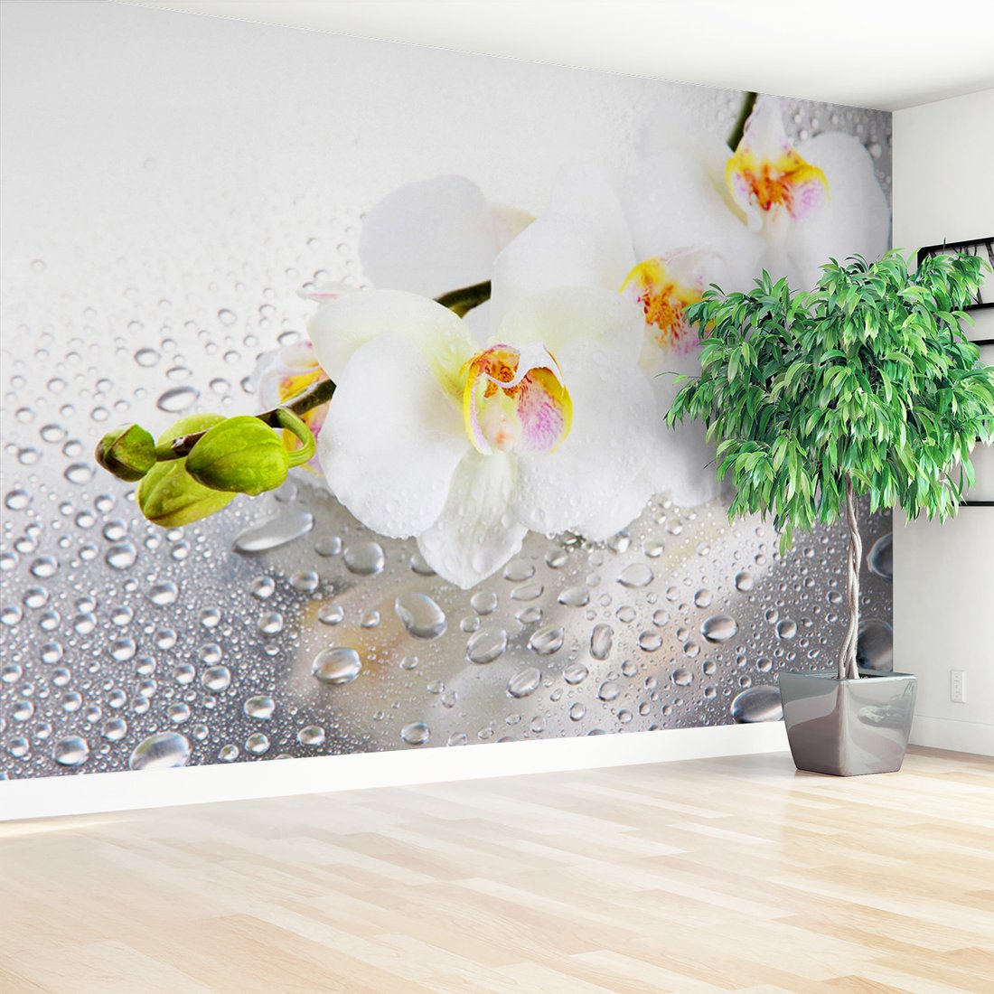 Nadaj swojemu wnętrzu unikalny charakter i głębię dzięki naszej fototapecie z motywem kwiaty, orchidee, krople. Ta imponująca dekoracja ścienna to połączenie nowoczesnego designu i zapierającego dech w piersiach motywu, które całkowicie odmieni Twoje pomieszczenie