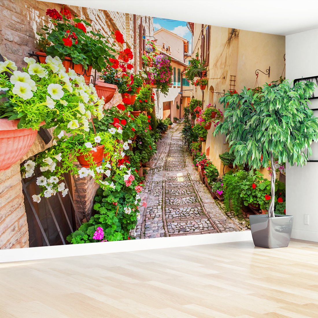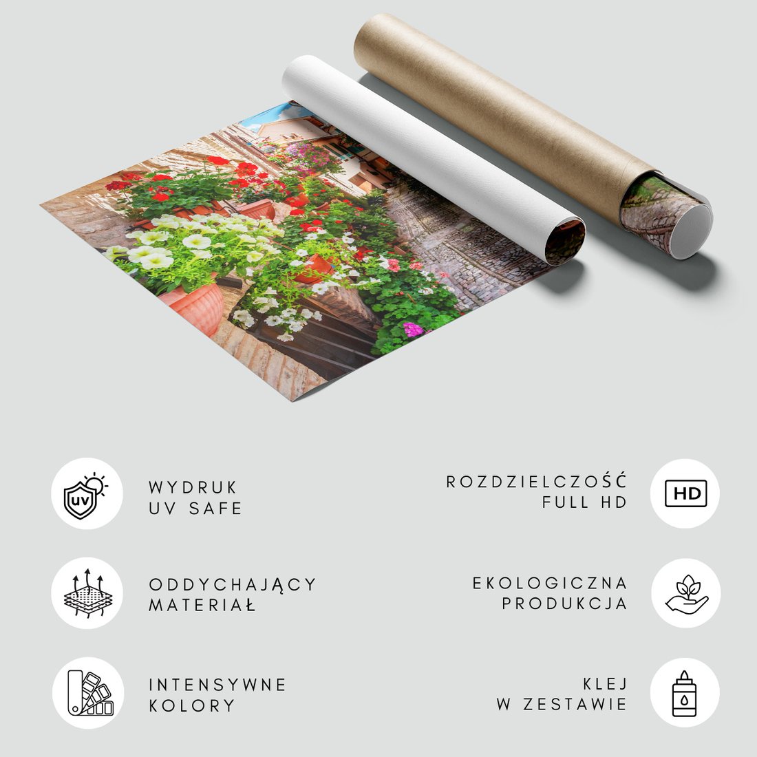 Nadaj swojemu wnętrzu unikalny charakter i głębię dzięki naszej fototapecie z motywem kwiaty, uliczka, miasto. Ta imponująca dekoracja ścienna to połączenie nowoczesnego designu i zapierającego dech w piersiach motywu, które całkowicie odmieni Twoje pomieszczenie