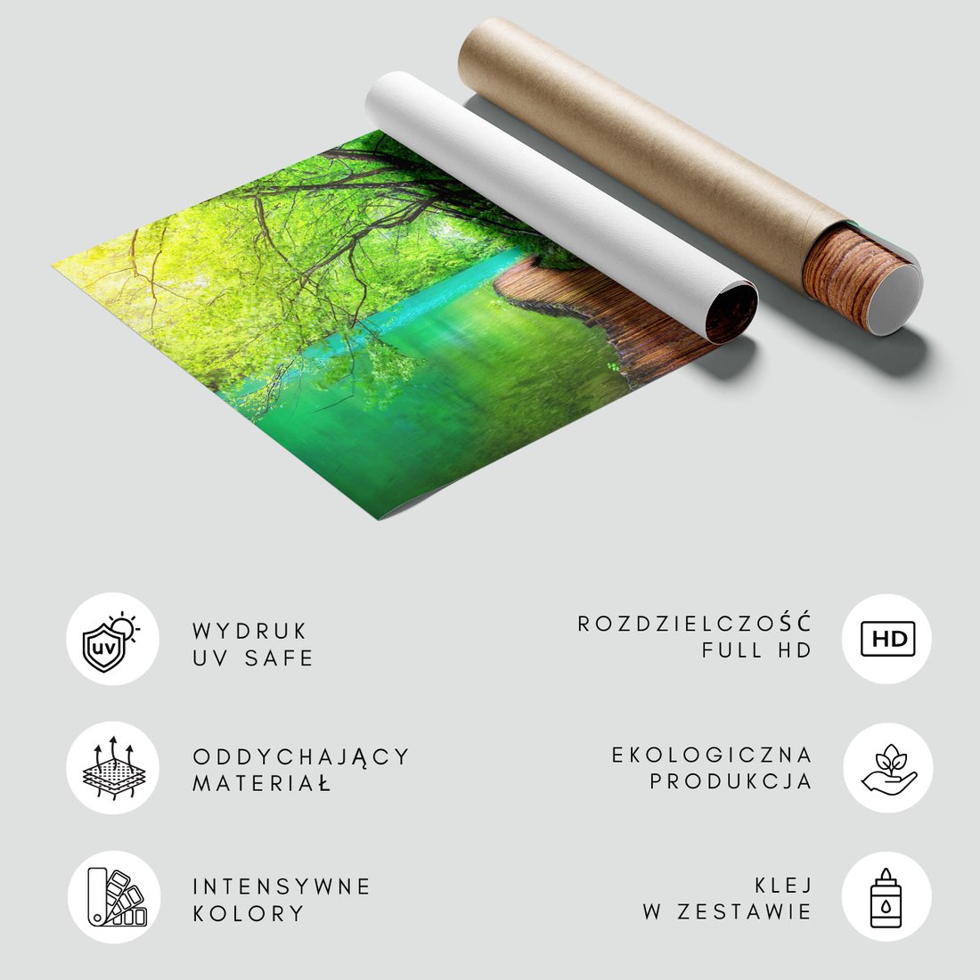 Nadaj swojemu wnętrzu unikalny charakter i głębię dzięki naszej fototapecie z motywem las, woda, ścieżka. Ta imponująca dekoracja ścienna to połączenie nowoczesnego designu i zapierającego dech w piersiach motywu, które całkowicie odmieni Twoje pomieszczenie