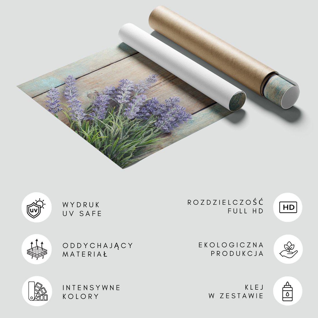 Nadaj swojemu wnętrzu unikalny charakter i głębię dzięki naszej fototapecie z motywem lawenda, kwiaty, drewno. Ta imponująca dekoracja ścienna to połączenie nowoczesnego designu i zapierającego dech w piersiach motywu, które całkowicie odmieni Twoje pomieszczenie