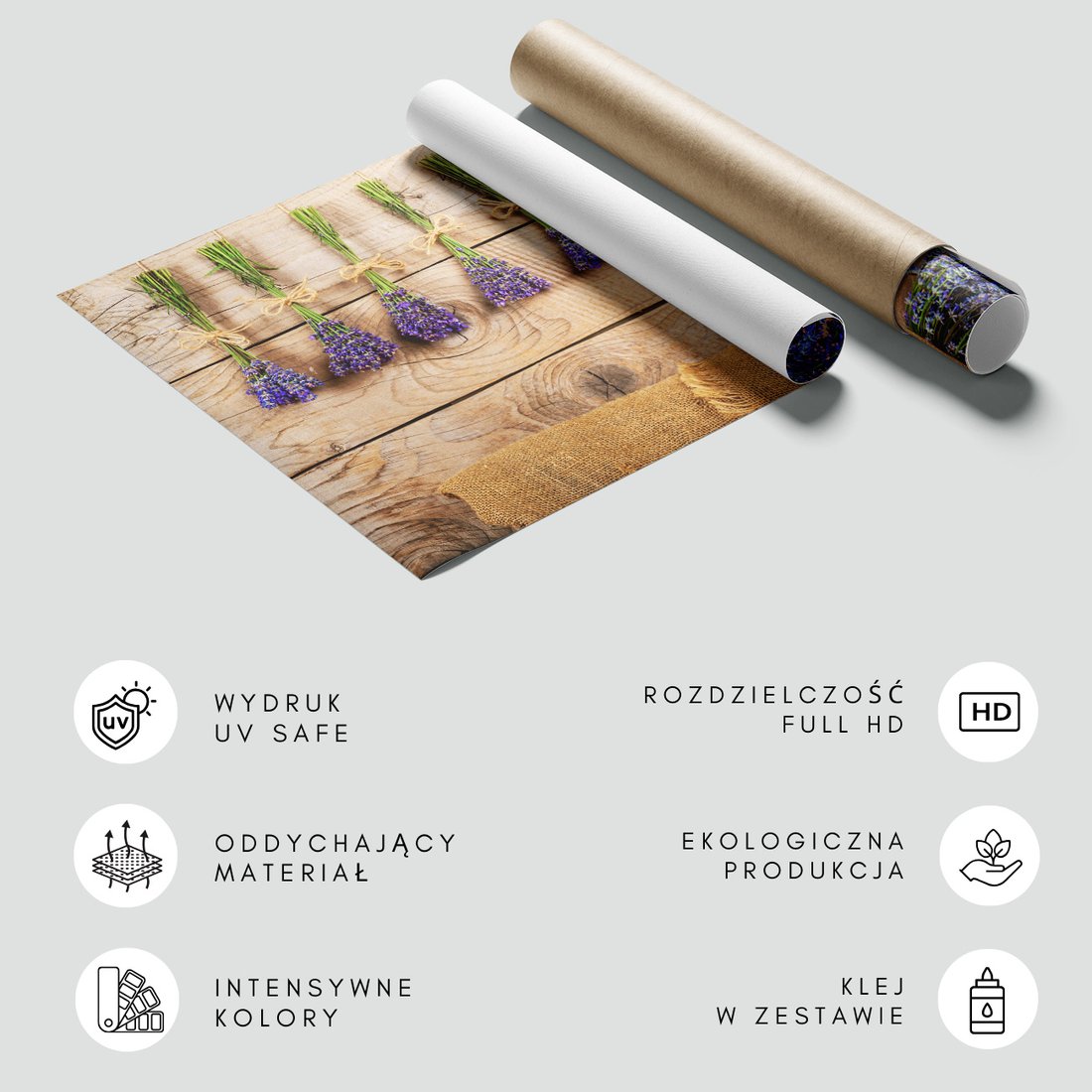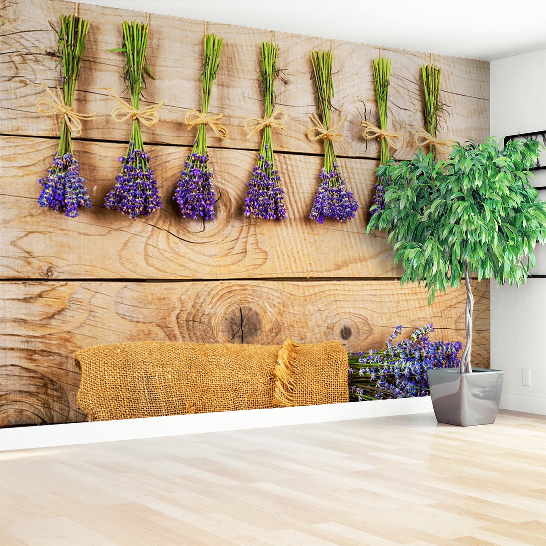 Nadaj swojemu wnętrzu unikalny charakter i głębię dzięki naszej fototapecie z motywem lawenda, kwiaty, drewno. Ta imponująca dekoracja ścienna to połączenie nowoczesnego designu i zapierającego dech w piersiach motywu, które całkowicie odmieni Twoje pomieszczenie