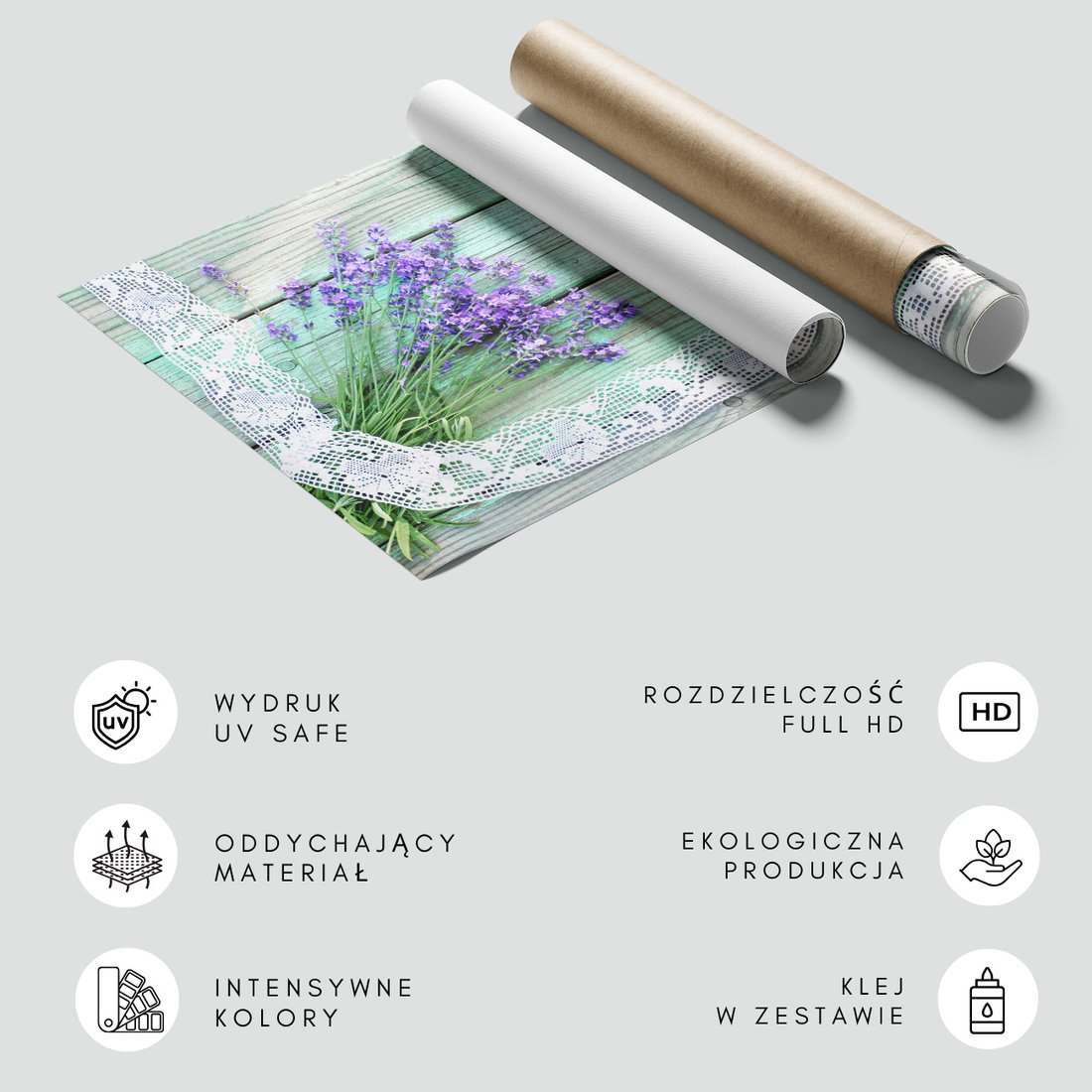 Nadaj swojemu wnętrzu unikalny charakter i głębię dzięki naszej fototapecie z motywem lawenda, kwiaty, koronka. Ta imponująca dekoracja ścienna to połączenie nowoczesnego designu i zapierającego dech w piersiach motywu, które całkowicie odmieni Twoje pomieszczenie