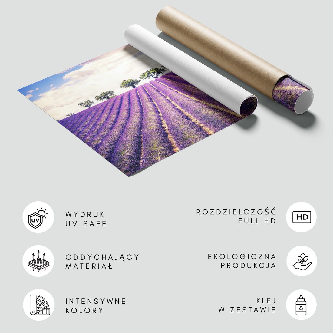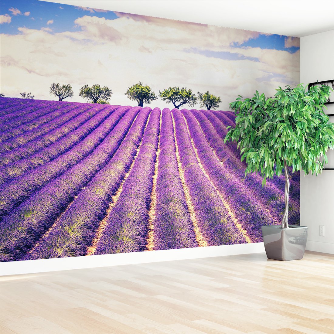 Nadaj swojemu wnętrzu unikalny charakter i głębię dzięki naszej fototapecie z motywem lawenda, pole, drzewa. Ta imponująca dekoracja ścienna to połączenie nowoczesnego designu i zapierającego dech w piersiach motywu, które całkowicie odmieni Twoje pomieszczenie