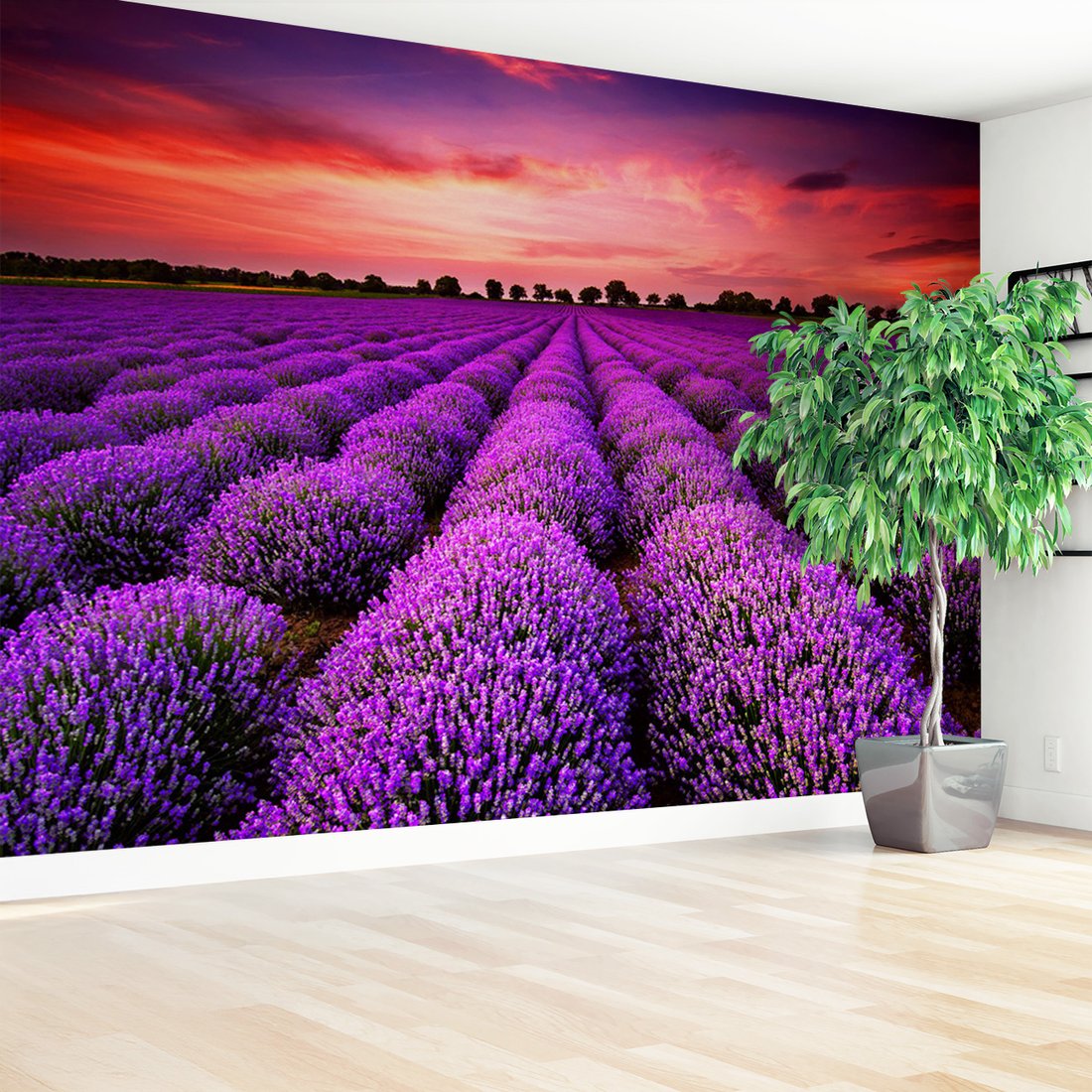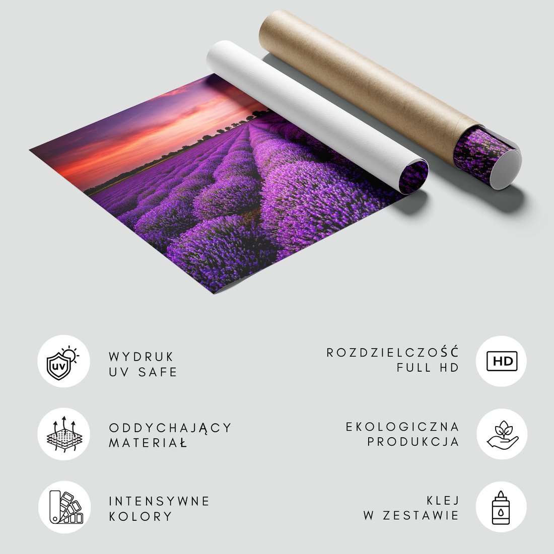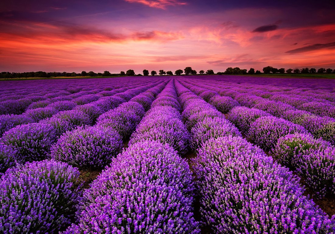 Nadaj swojemu wnętrzu unikalny charakter i głębię dzięki naszej fototapecie z motywem lawenda, pole, zachód słońca. Ta imponująca dekoracja ścienna to połączenie nowoczesnego designu i zapierającego dech w piersiach motywu, które całkowicie odmieni Twoje pomieszczenie