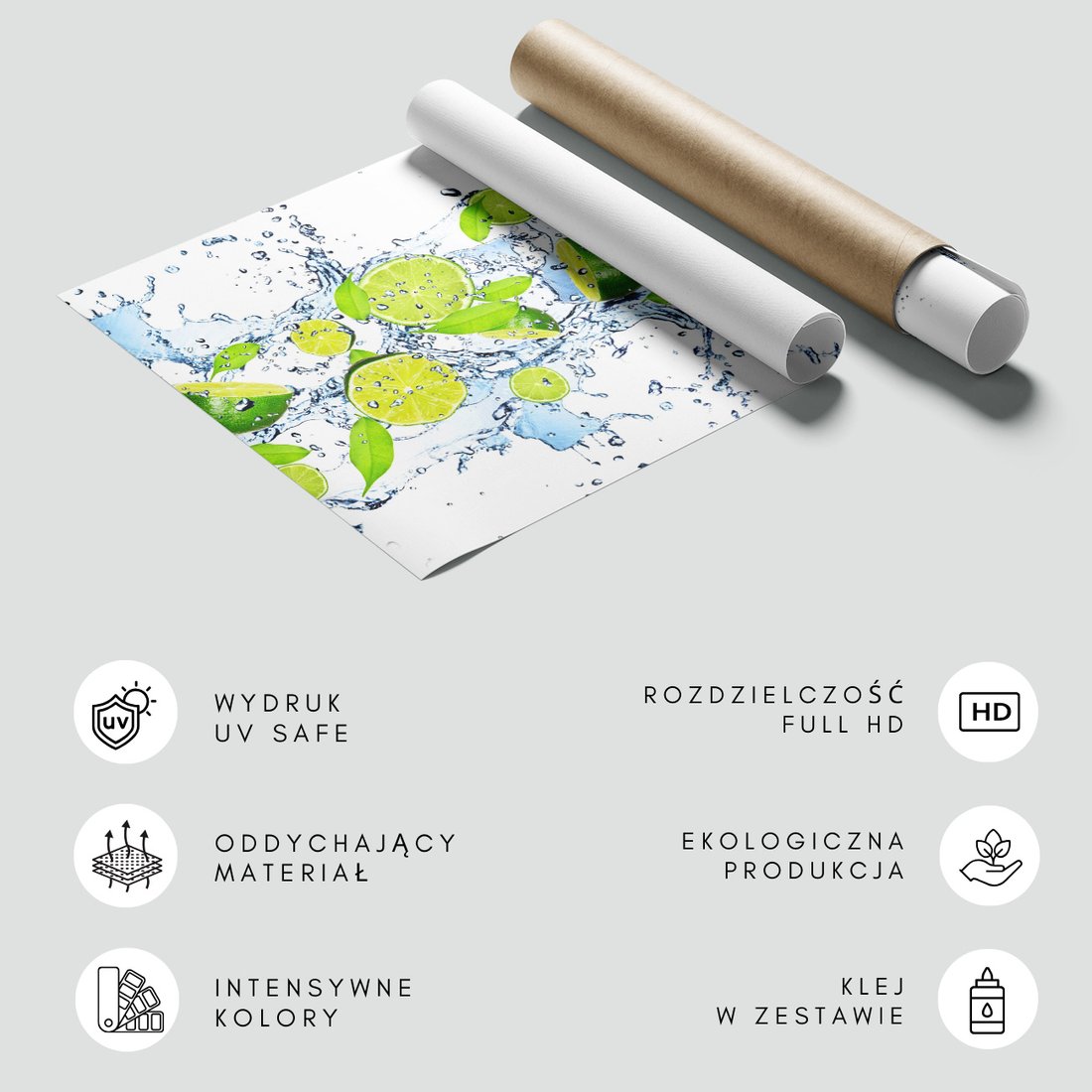 Nadaj swojemu wnętrzu unikalny charakter i głębię dzięki naszej fototapecie z motywem limonki, woda, liście. Ta imponująca dekoracja ścienna to połączenie nowoczesnego designu i zapierającego dech w piersiach motywu, które całkowicie odmieni Twoje pomieszczenie
