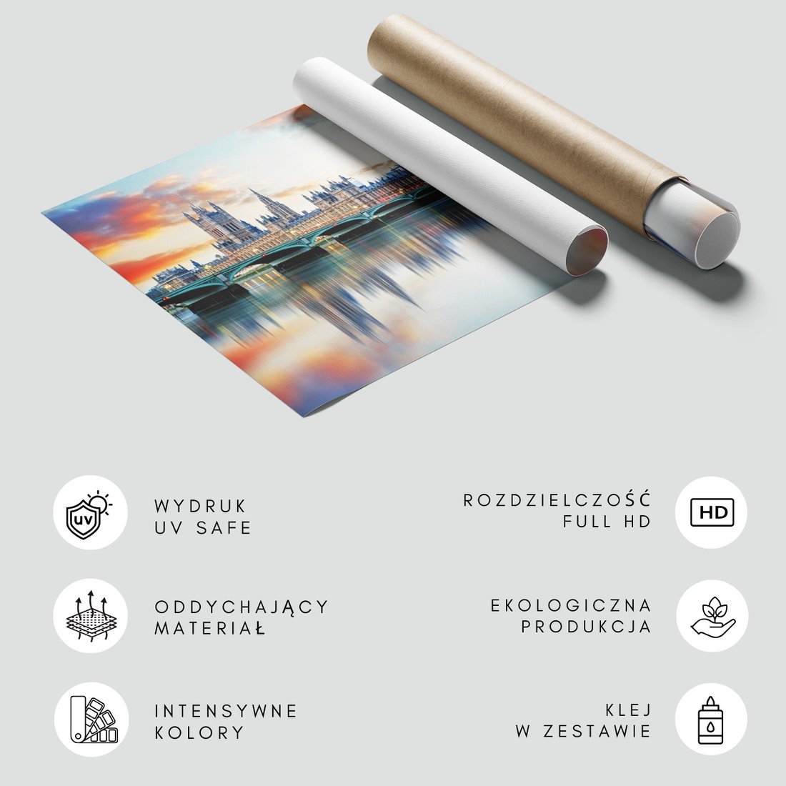 Nadaj swojemu wnętrzu unikalny charakter i głębię dzięki naszej fototapecie z motywem Londyn, Tamiza, Big Ben. Ta imponująca dekoracja ścienna to połączenie nowoczesnego designu i zapierającego dech w piersiach motywu, które całkowicie odmieni Twoje pomieszczenie