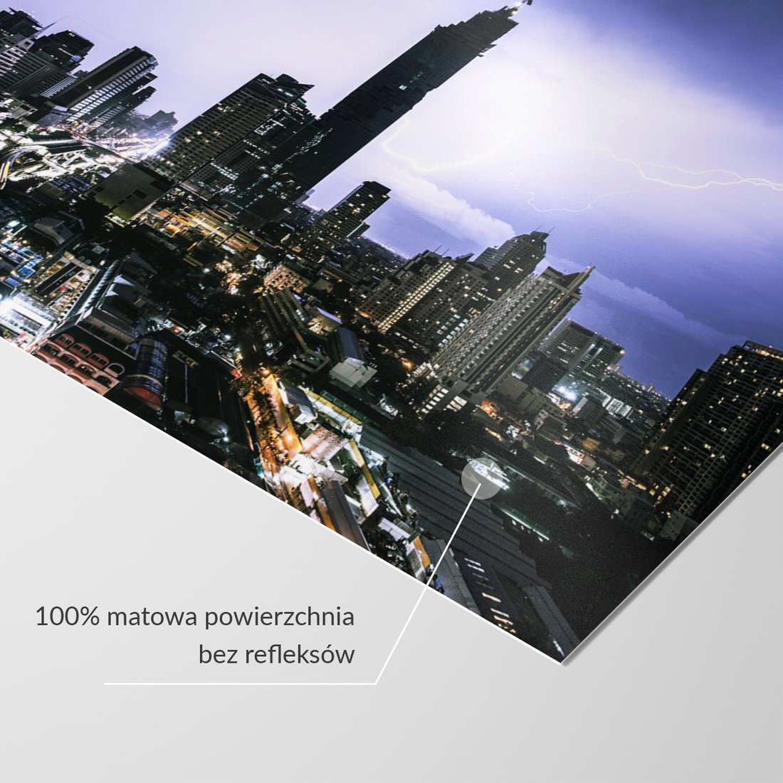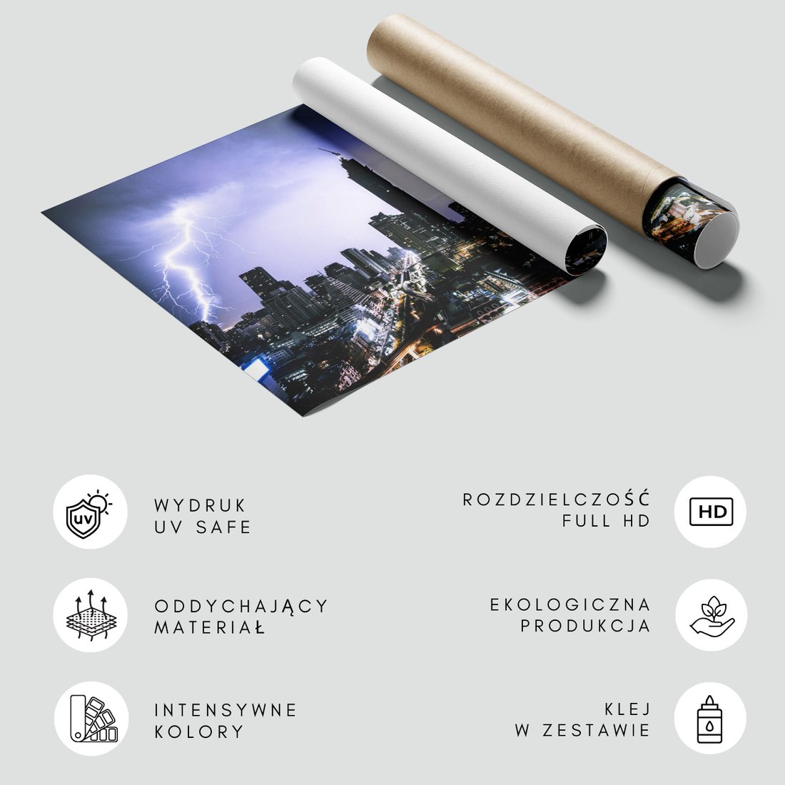 Nadaj swojemu wnętrzu unikalny charakter i głębię dzięki naszej fototapecie z motywem miasto, burza, noc. Ta imponująca dekoracja ścienna to połączenie nowoczesnego designu i zapierającego dech w piersiach motywu, które całkowicie odmieni Twoje pomieszczenie