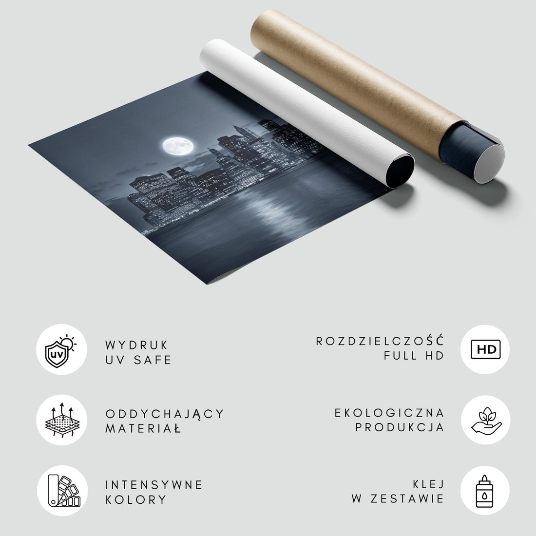 Nadaj swojemu wnętrzu unikalny charakter i głębię dzięki naszej fototapecie z motywem miasto, noc, księżyc. Ta imponująca dekoracja ścienna to połączenie nowoczesnego designu i zapierającego dech w piersiach motywu, które całkowicie odmieni Twoje pomieszczenie