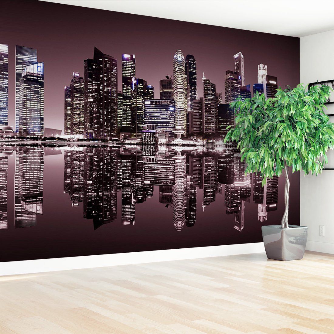 Nadaj swojemu wnętrzu unikalny charakter i głębię dzięki naszej fototapecie z motywem miasto, noc, odbicie. Ta imponująca dekoracja ścienna to połączenie nowoczesnego designu i zapierającego dech w piersiach motywu, które całkowicie odmieni Twoje pomieszczenie